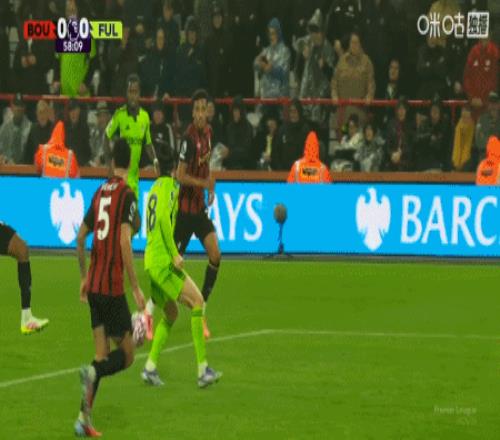 第78分钟,塞门约小角度穿门将小门扳平比分,伯恩茅斯1-1富勒姆