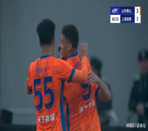第77分钟,山东泰山得到一个位置不错的定位球,克雷桑送入禁区,卡扎伊什维利停球抽射远角破门,3:1!比赛就此锁定胜局。
