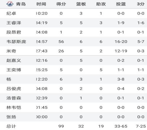 CBA常规赛,青岛vs同曦,这场比赛打的很激烈,青岛男篮这边小外援韦瑟斯庞状态爆棚,打了24分钟,投篮20中16,三分7中5,罚球20中19狂砍56分6篮板6助攻,帮助球队以99:88战胜同曦。整场比赛,南京同曦都找不到限制韦瑟斯庞的方法,不是被颜射就是被过,后来防不住不得不犯规。此外,青岛的另一名外援米奇也表现出色,19中12得到26分5篮板2助攻,也就是说光这2名外援就合砍82分,再加上约瑟夫-杨的6分,3名外援共得88分。