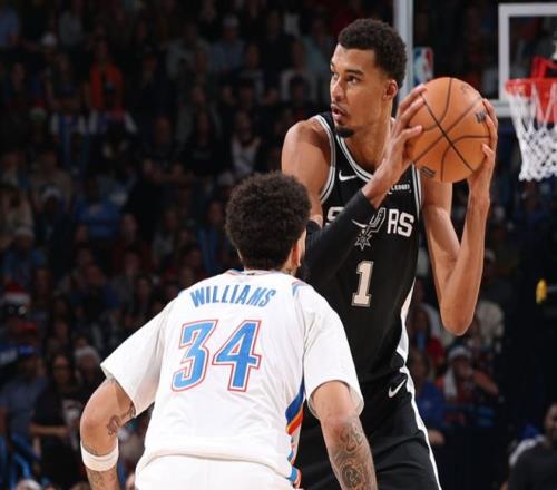 马刺正在用表现证明,他们或许就是目前联盟中最好的球队。他们已经连续两场大胜雷霆,两场比赛都早早进入垃圾时间,一场在主场,一场在俄克拉荷马城的客场。他们拥有三名能在48分钟内有效组织进攻的后卫,而这三人甚至都不是球队的最佳球员。刚从小腿伤势中复出的文班亚马仍受出场时间限制,距离最佳状态更是相去甚远。