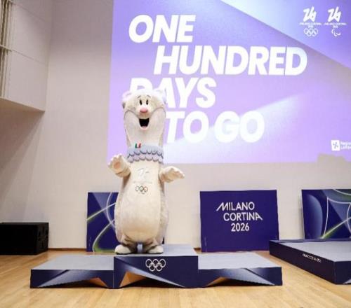 10月29日,米兰-科尔蒂纳冬奥会吉祥物“蒂娜”与冬奥会颁奖台合影。 当日,距离2026年米兰-科尔蒂纳冬奥会开幕式100天之际,意大利伦巴第大区政府在米兰举行庆祝活动。 新华社发